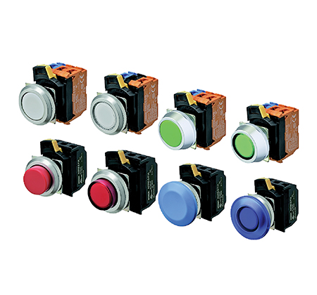 Línea completa de botones pulsadores, selectores y selectores de 22 mm con llaves e indicadores luminosos. Estos confiables interruptores están disponibles en una amplia gama de formas y colores.