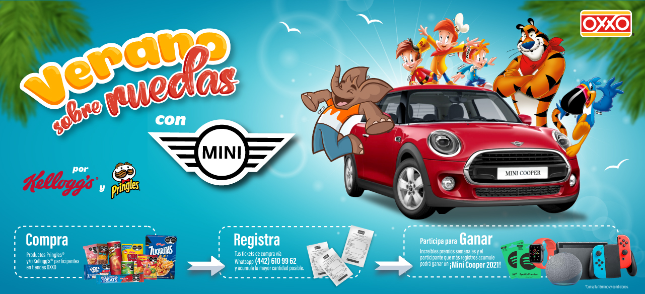 Los términos y condiciones descritos a continuación (las “Bases”) establecen las condiciones y requisitos bajo los cuales se regirá la actividad promocional denominada “VERANO SOBRE RUEDAS CON MINI POR KELLOGG’S Y PRINGLES” (en lo sucesivo la “Promoción”). Lo aquí dispuesto es obligatorio para todos los participantes de la Promoción, por lo que se deberá dar lectura total a las presentes Bases. La Promoción se ejecutará a través de una mecánica de comprar y registrar el ticket de compra.